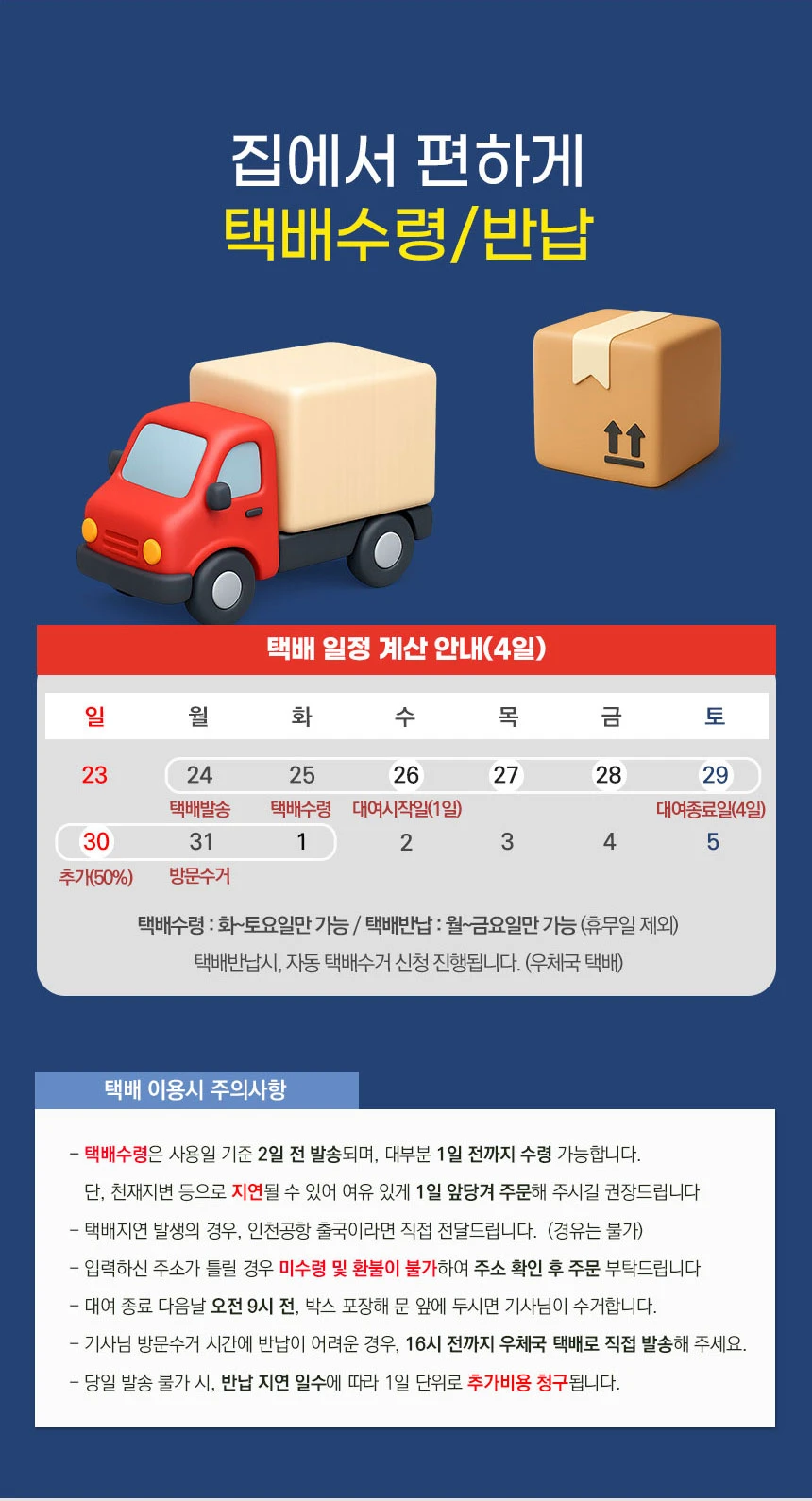 You can receive your order 1 day prior to the start date, with shipping 2 days prior. It will be shipped via post office courier and can be received by Saturday. Please enter the actual start and end dates. For any additional days due to public holidays, please add the number of days in the options.